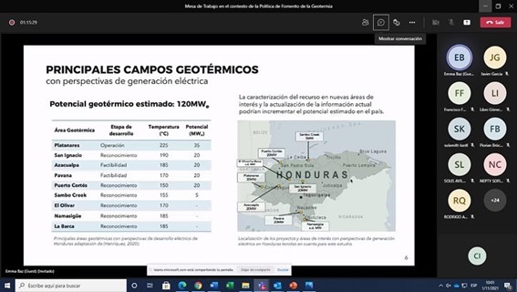 La Secretaría de Energía a través de la Dirección General de Energía Renovable y Eficiencia Energética, dio inicio a la Mesa de Geotermia en el contexto de la Política Nacional de Fomento a la Geotermia en Honduras.