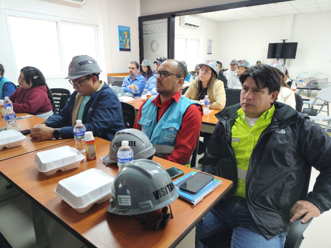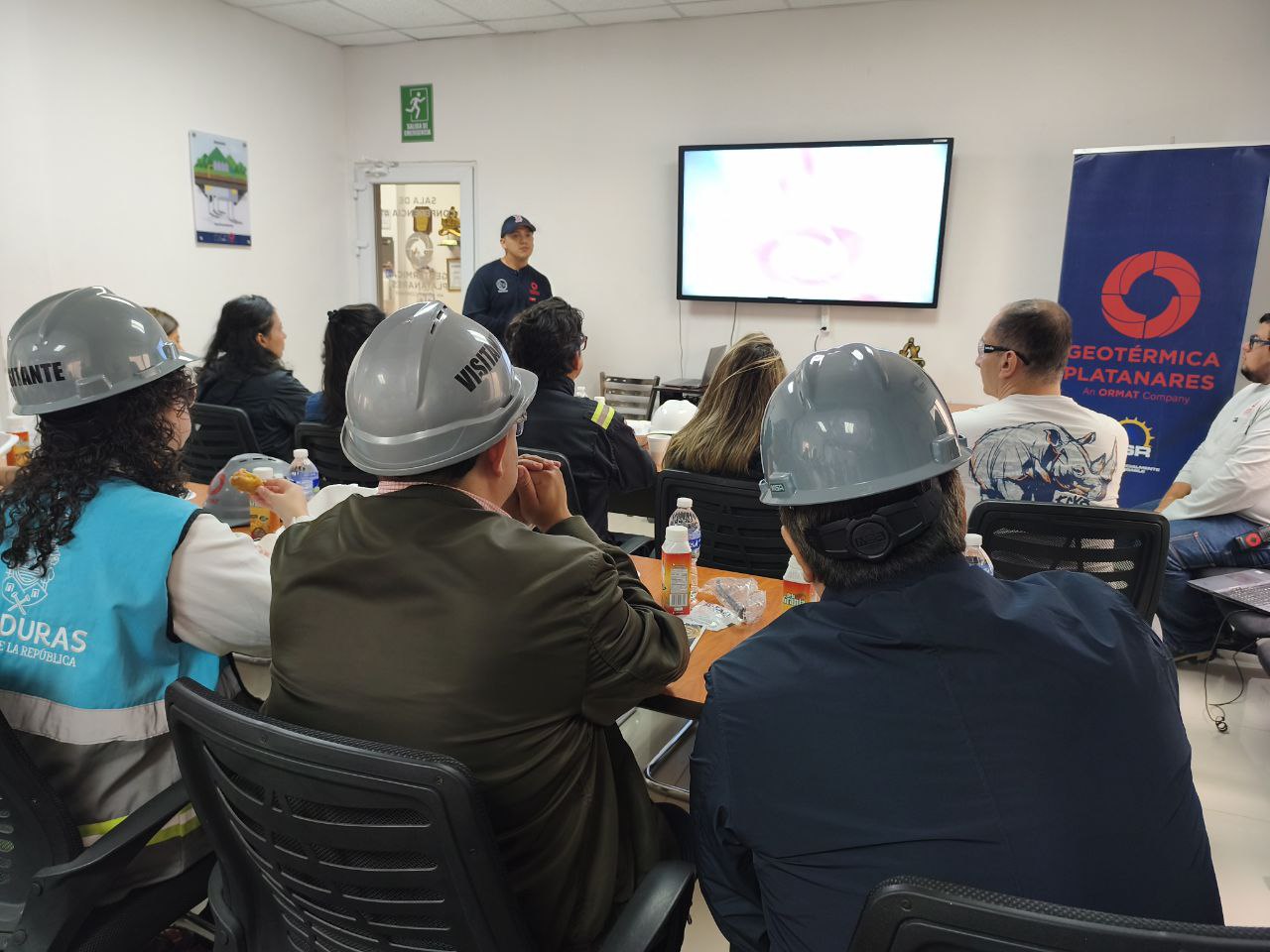 La actividad central del intercambio se desarrolló en la planta geotérmica Geoplatanares, ubicada en la aldea San Andrés, municipio de La Unión, Copán. Allí, los expertos de los tres países realizaron un recorrido técnico detallado por la planta, conociendo de primera mano los procesos operativos y la tecnología de punta aplicada a la generación geotérmica. Este contacto directo permitió un enriquecedor intercambio de experiencias, buenas prácticas y lecciones aprendidas en exploración, operación y gestión de recursos geotérmicos.